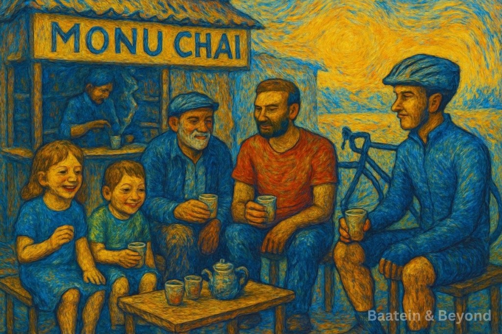 Sanjay’s lips curled, almost without thinking. He didn’t know their names or stories — just that this moment, dusty and sweet, felt real. Like he’d wandered into a meeting with no agenda, no slides, just life unfolding.